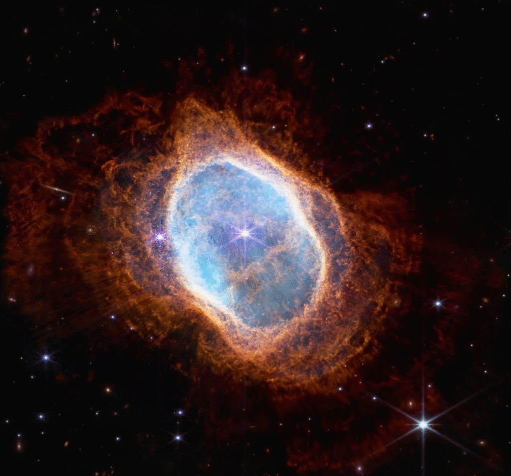 Nebulosas Planetarias: Las estrellas de masa baja y media, como nuestro Sol, no terminan en explosiones supernova, pero al final de su vida, expulsan lentamente sus capas exteriores de gas cuando agotan su combustible nuclear. Este gas forma una nube alrededor del núcleo de la estrella, que queda expuesto como una enana blanca.